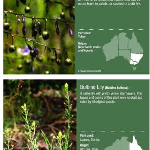 Our native food garden interpretive signs are designed to inform the garden visitor about the name of the plant (common and Latin), its origin, growth habit, which part is eaten and culinary uses. A native food plant needs to be identified so that the visitor can tour the garden learning as they go. Highly recommended for community gardens, schools, TAFES, kindergarten, daycare centres.